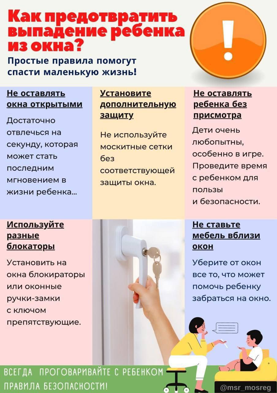 - объясняйте ребенку опасность открытого окна из-за возможного падения.